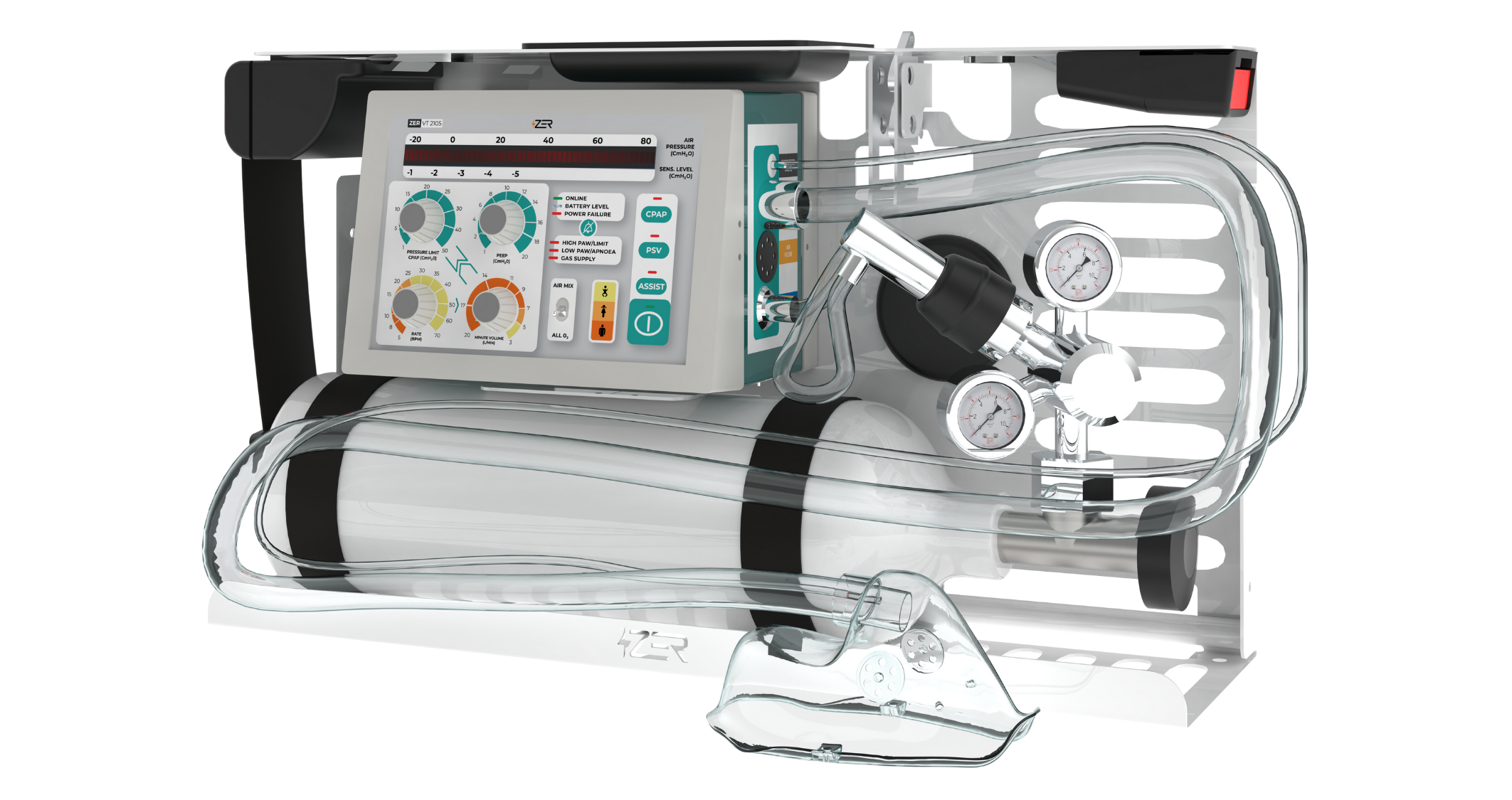 | Uyarılar | Batarya Seviyesi, Düşük ve Yüksek Havayolu Basıncı, Apnea, Gaz Kaynağı, Güç Kesintisi |